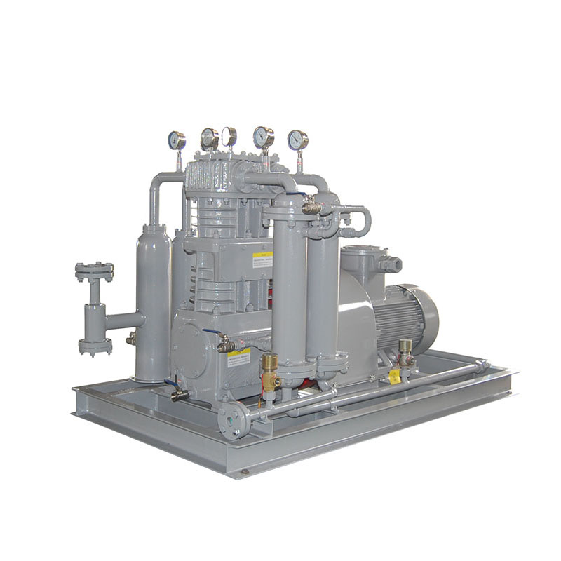 乙烯壓縮機壓縮機是我公司新型產品,它集壓縮機、氣液分離器、安全閥冷卻器、電動機等為一體,成一完整的機組。具有功能多、體積小、重量輕、功率小、運行平穩(wěn)可靠等特點,并有良好的安全性能。它為輸送氫氣,可為用戶最大限度地創(chuàng)造經(jīng)濟效益。由于采用獨特的無油潤滑設計,氣缸內無需用油潤滑,因而不會對介質造成污染,使被輸送物質保持純凈。本機設計成機組型式,許多管線上的附件都安裝在機組上,省卻了氣液分離器、穩(wěn)壓罐、安全閥、進氣過濾器等,減小了機房的面積,減少了操作維護工作量,節(jié)省了投資。